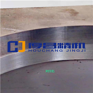 总有人问丝杆会不会晃动?厚昌自行设计的丝杆支承机构可以实现36m/min的空跑速率。如果丝杆晃动就无法以F1500铣出均匀的六角形面。齿轮导程一般50mm以上,厚昌的丝杆导程20mm,所以铣出的纹路更细腻。